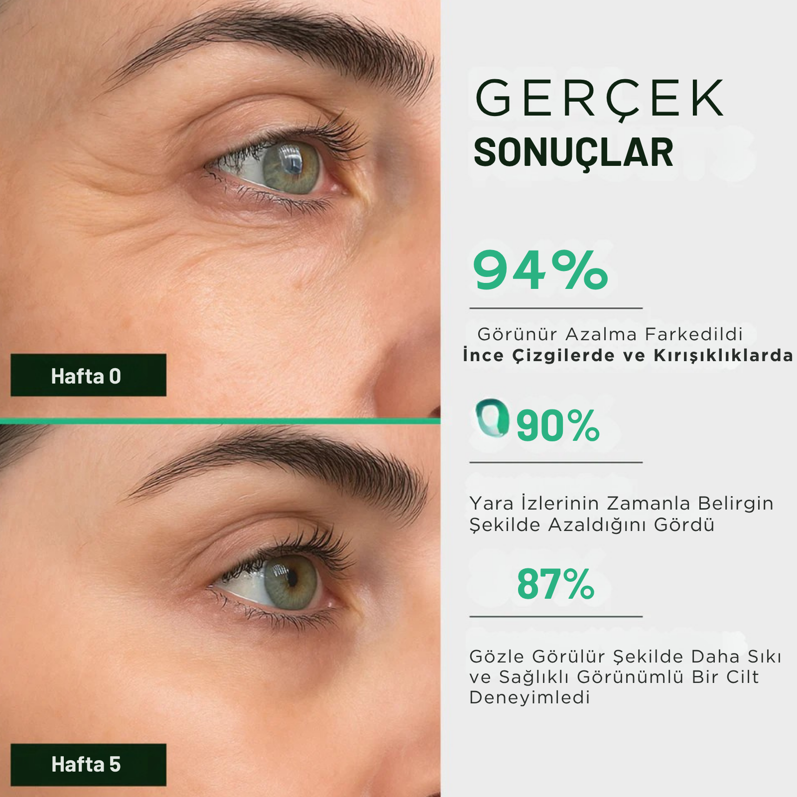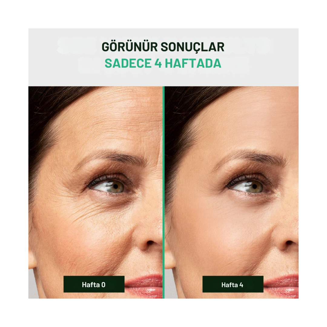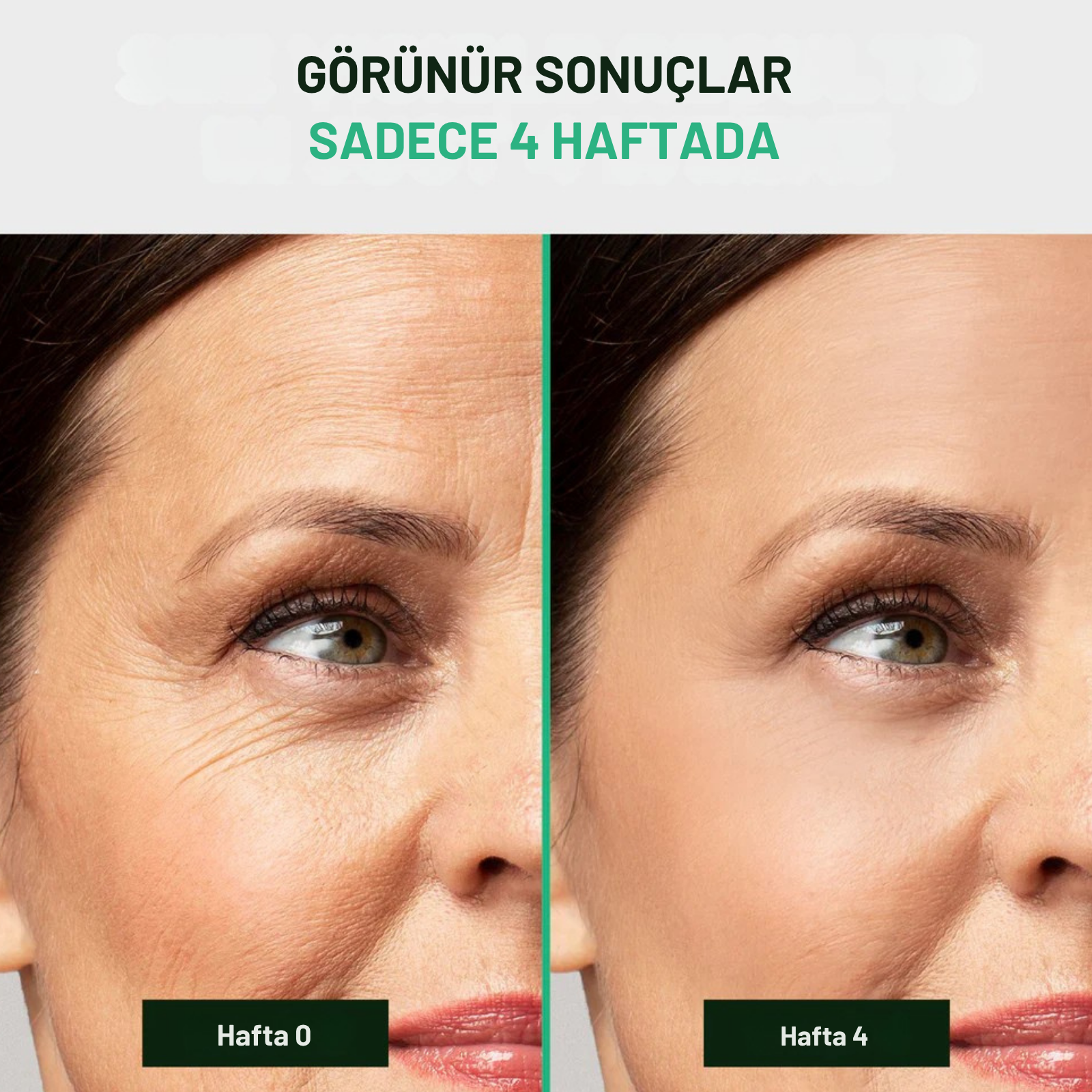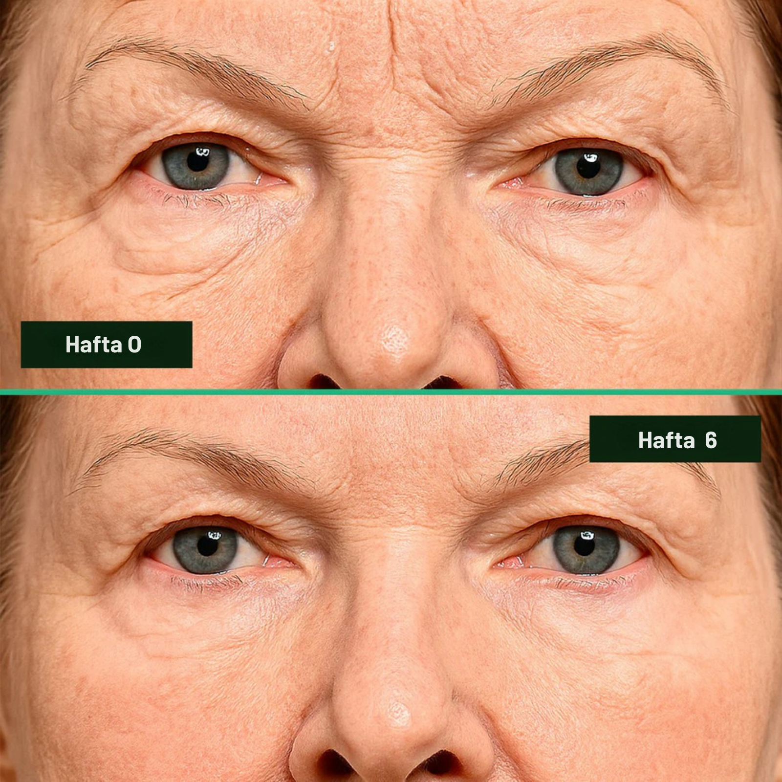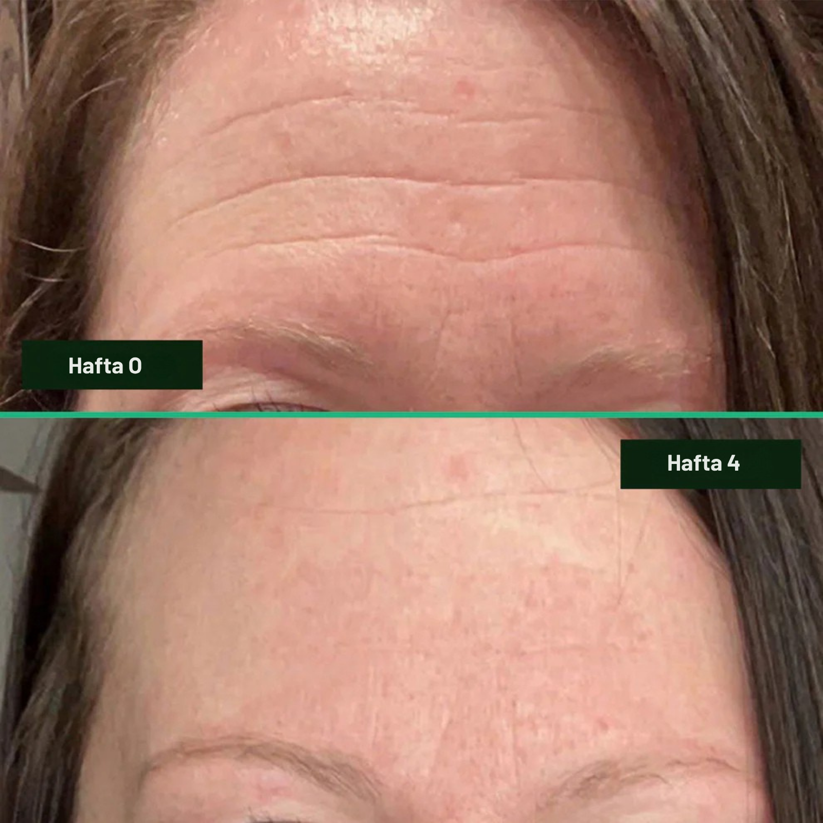 İlk kullanımda ciltte anında gerginlik ve ferahlık hissi oluşur. Düzenli kullanımda 2–3 hafta içinde kırışıklık görünümünde belirgin fark gözlemlenir.