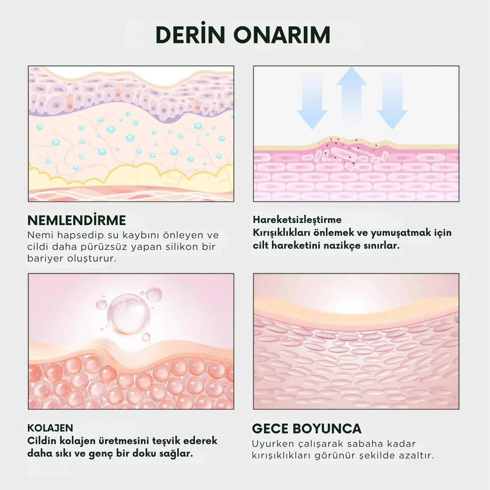 Bu sayede cilt, ihtiyaç duyduğu nem ve kolajeni derin katmanlarına kadar emer.
